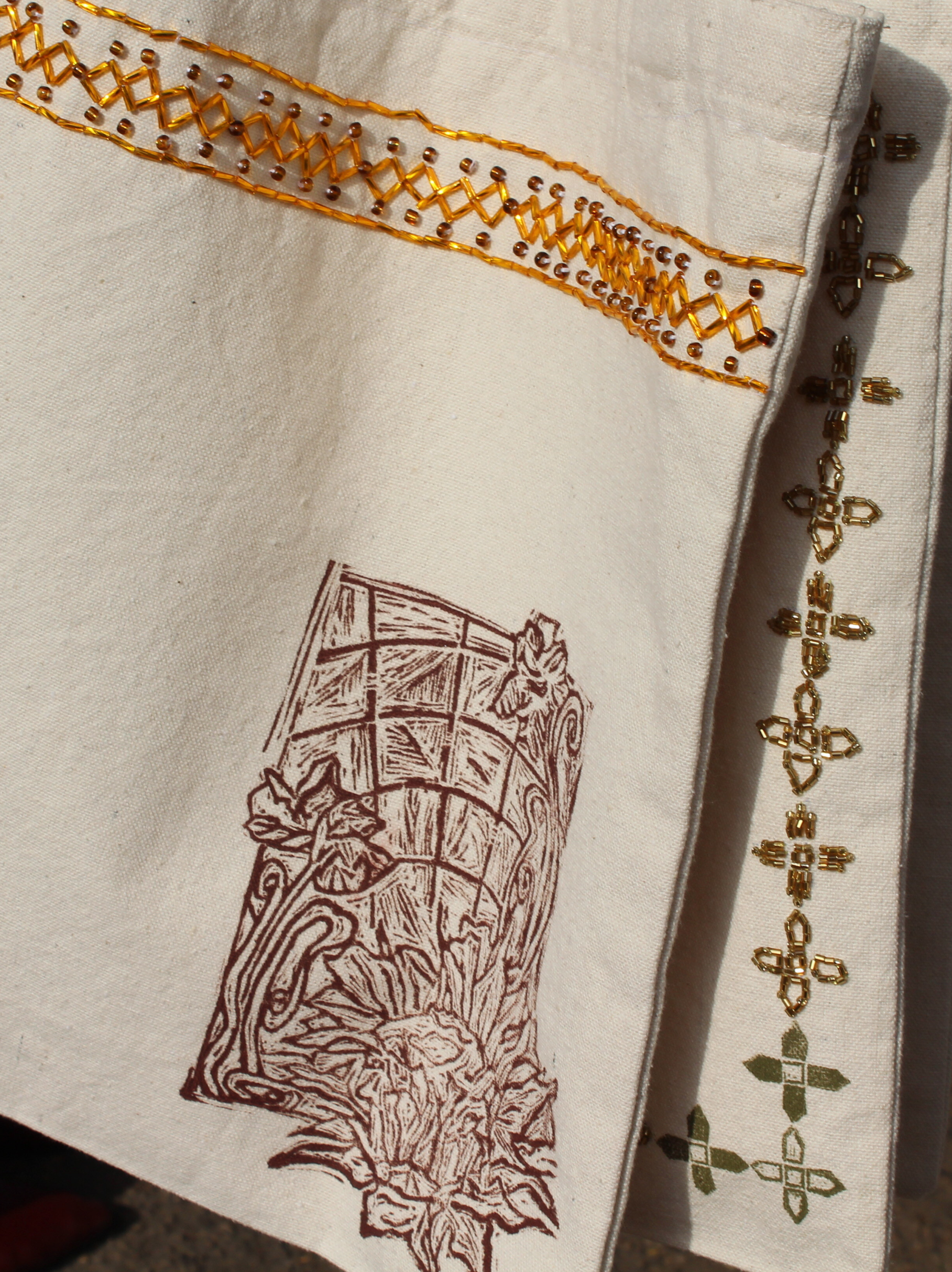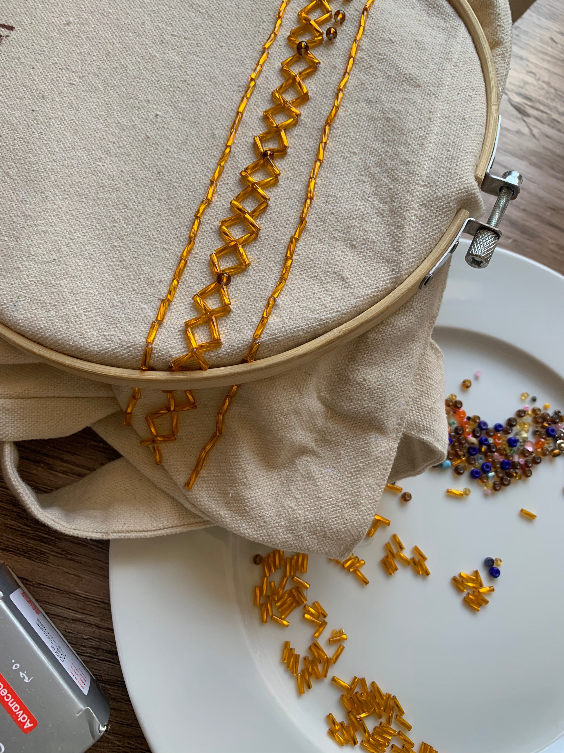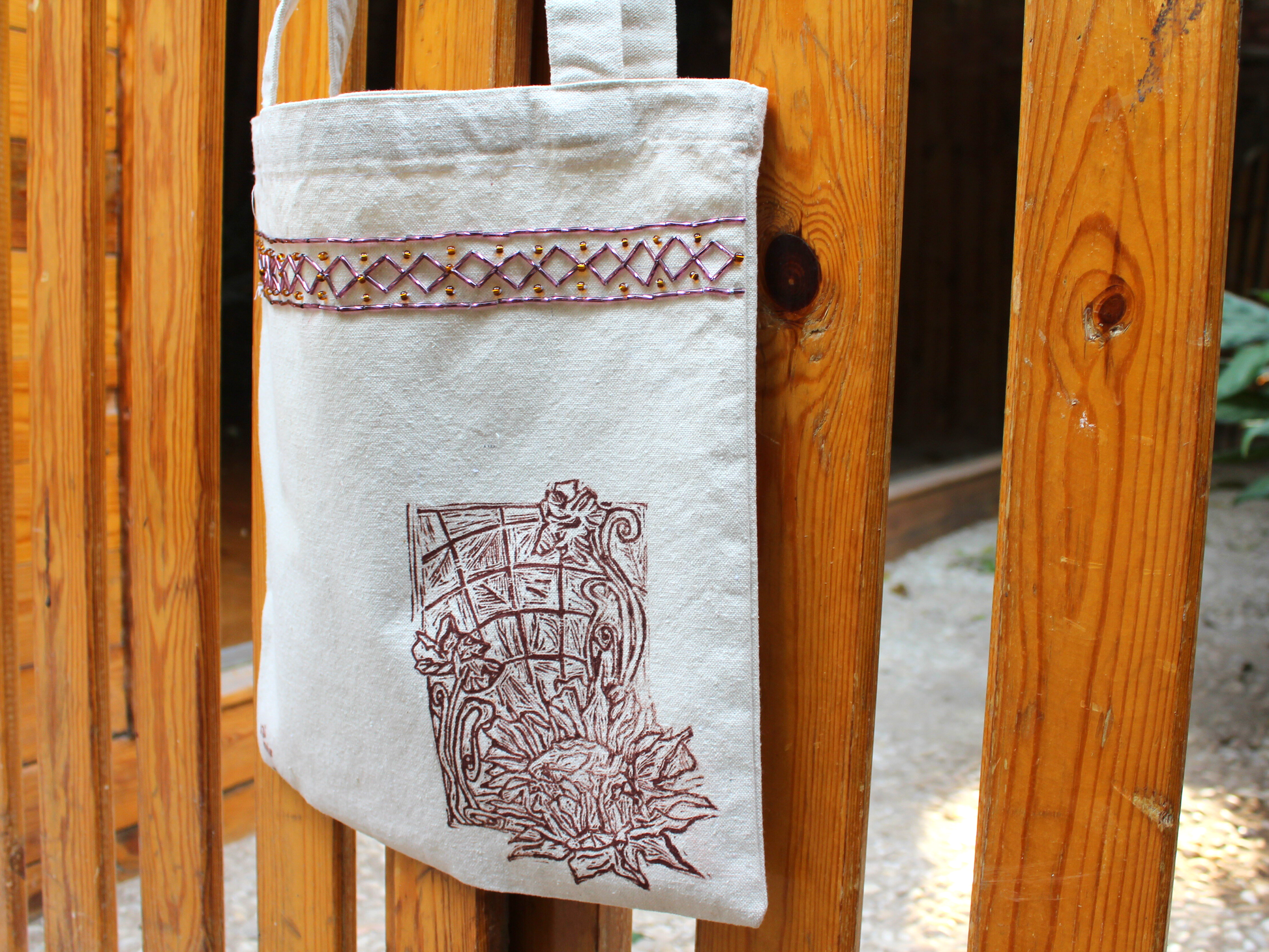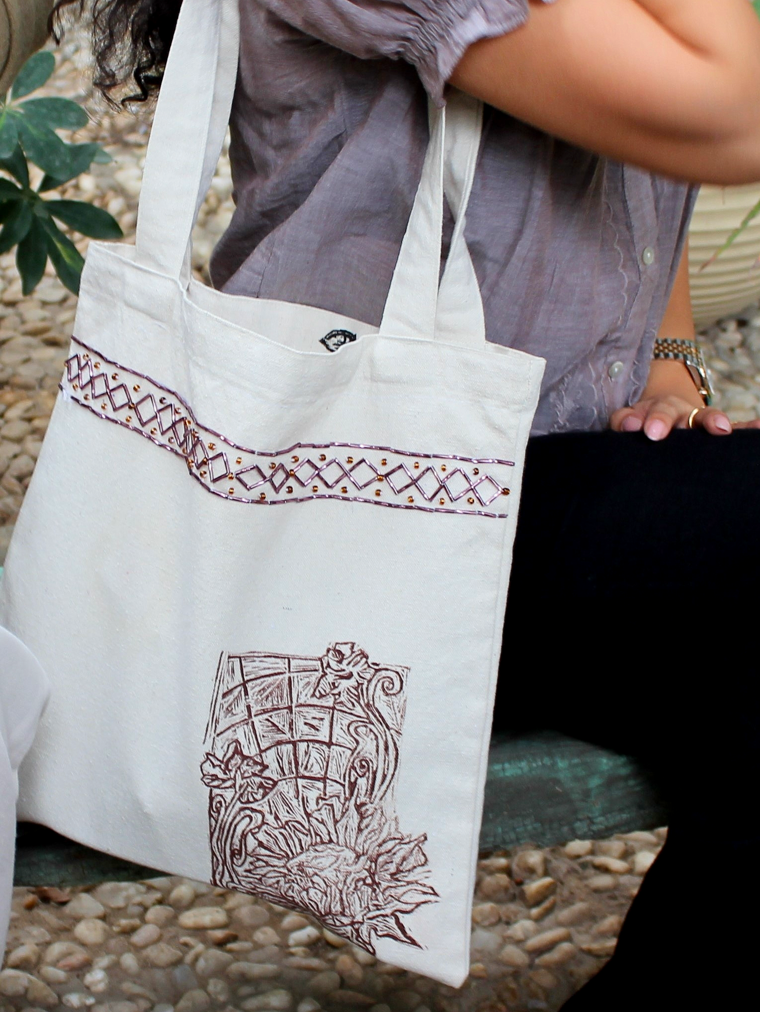 Tote in our Solar Power design, hand-printed on locally sourced Duk fabric and enhanced with beads by @hagerelsayed/@3ion, adding texture and shine. Very limited quantities.